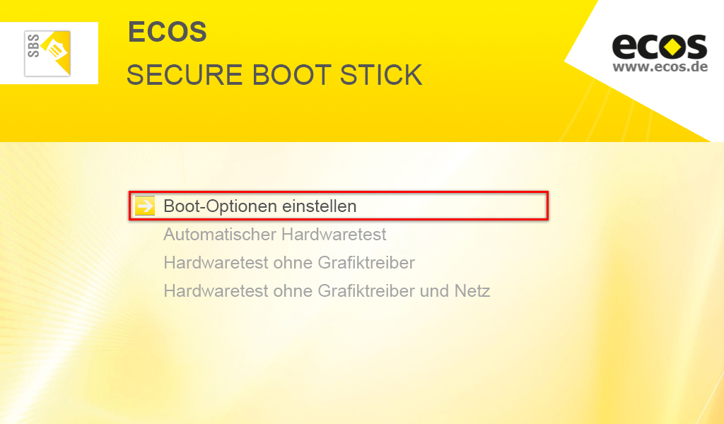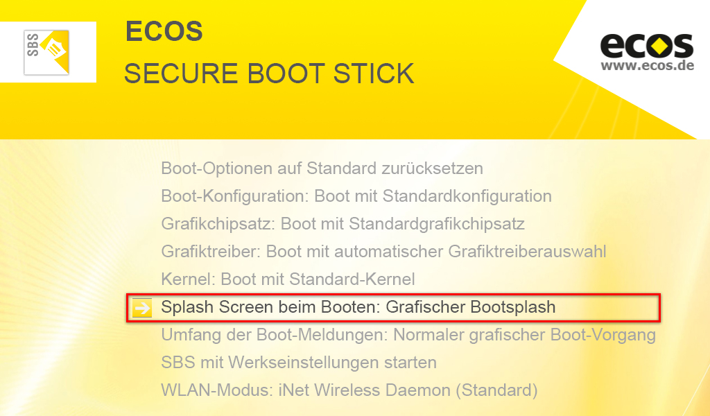 Wie Sie den Bootsplash auf dem ECOS SecureBootStick® umstellen