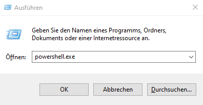 - Geben Sie im Feld Öffnenpowershell.exe ein und klicken Sie OK