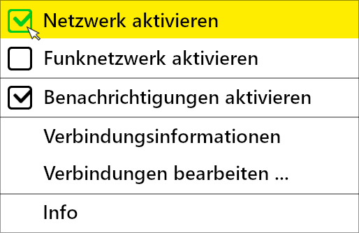 - Das Kontextmenü des Netzwerkmanagers öffnet sich