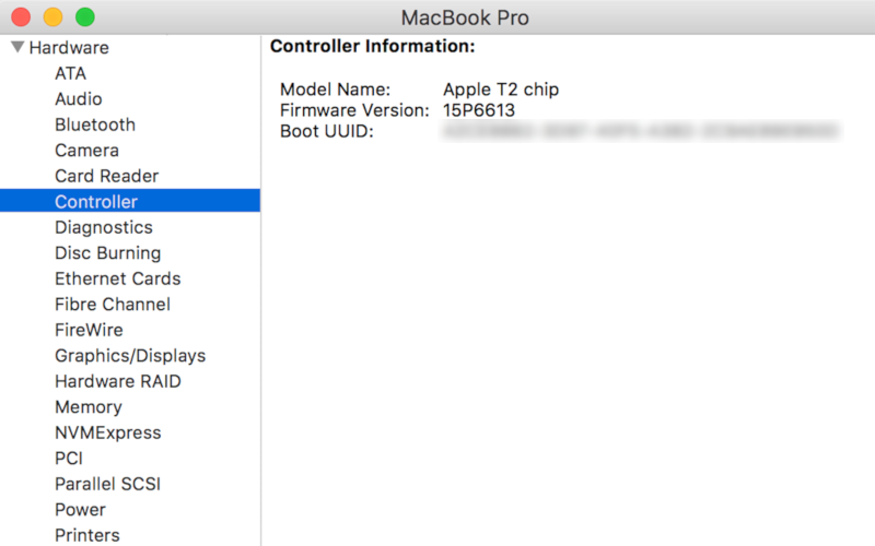 In der Controller- bzw. Steuerungsinformation sehen Sie nun das Modell des Steuerungschips und ob in Ihrem Apple-Computer ein T2-Sicherheitschip verbaut wurde.