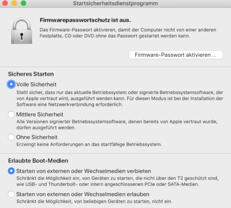 Die Faustregel: Wenn auf Ihrem iMac oder MacBook kein Startsicherheitsdienstprogramm vorhanden ist, wurde auch kein T2 Chip eingebaut.