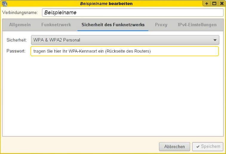 - Tragen Sie Ihr WPA-Kennwort ein (unter Ihrem Router)